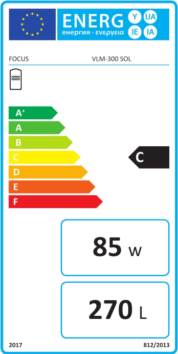 Varmvattenberedare Focus VLM 300 Sol är en varmvattenberedare för effektivt utnyttjande av solvärme för varmt tappvatten i villor och fritidshus. Beredaren kan användas till alla på marknaden förekommande solpaneler. VLM 300 SOL har en effektiv solslinga och två elpatroner på 3 kW vardera. Den övre elpatronen ser till att temperaturen är tillräckligt hög (minst 60°C) under sommaren när beredaren värms via solslingan. På så sätt utnyttjas hela volymen i beredaren till uppvärmning med solvärme. Den nedre elpatronen är avsedd för uppvärmning av tappvattnet under vintern eller om man väljer att ansluta solfångarsystemet senare.