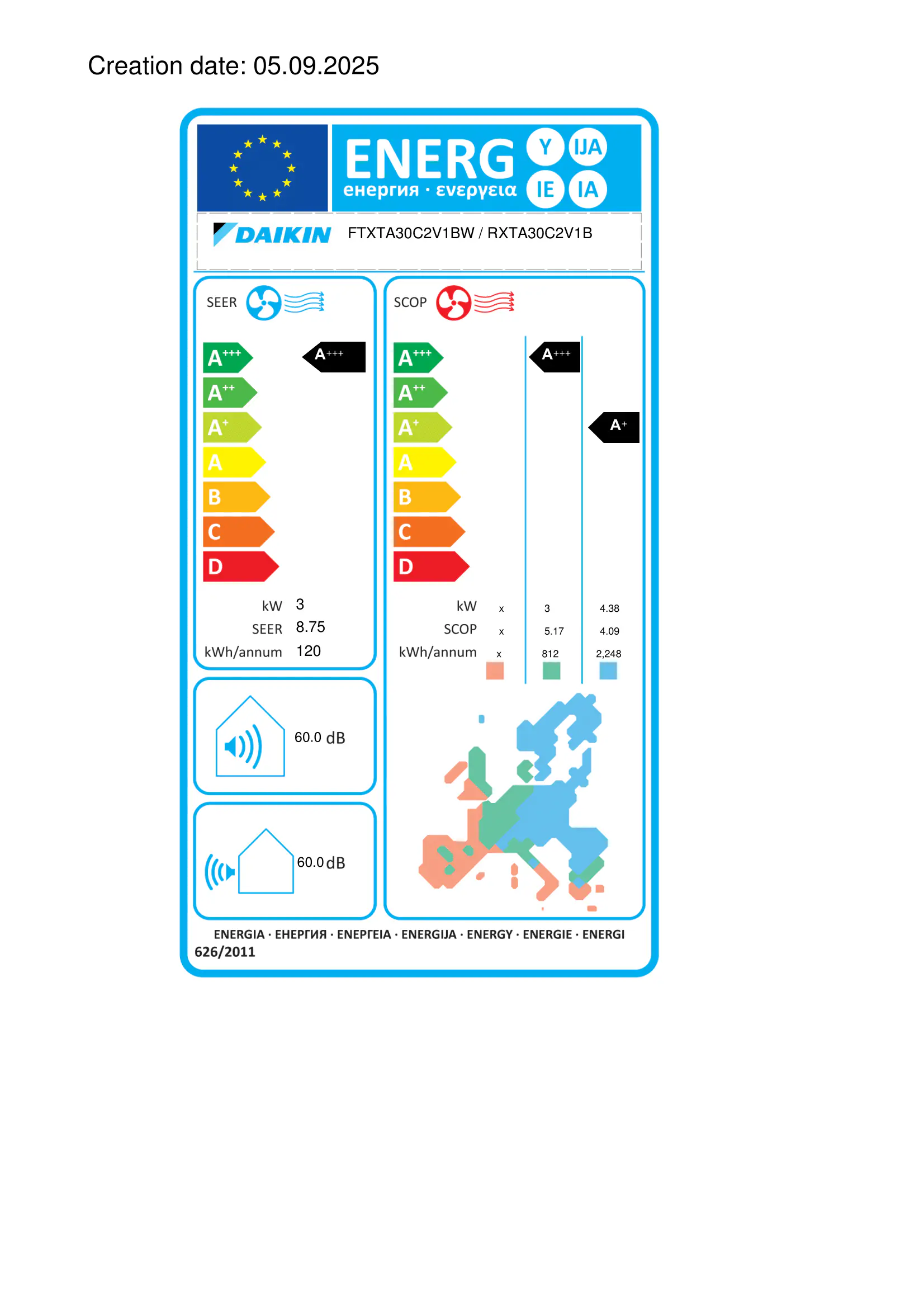 | Modell Inomhusdel | FTXTA30C2V1BW |
