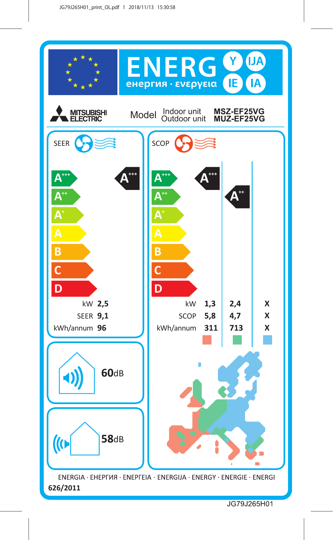 | Modell Utomhusdel | MUZ-EF25VGH |