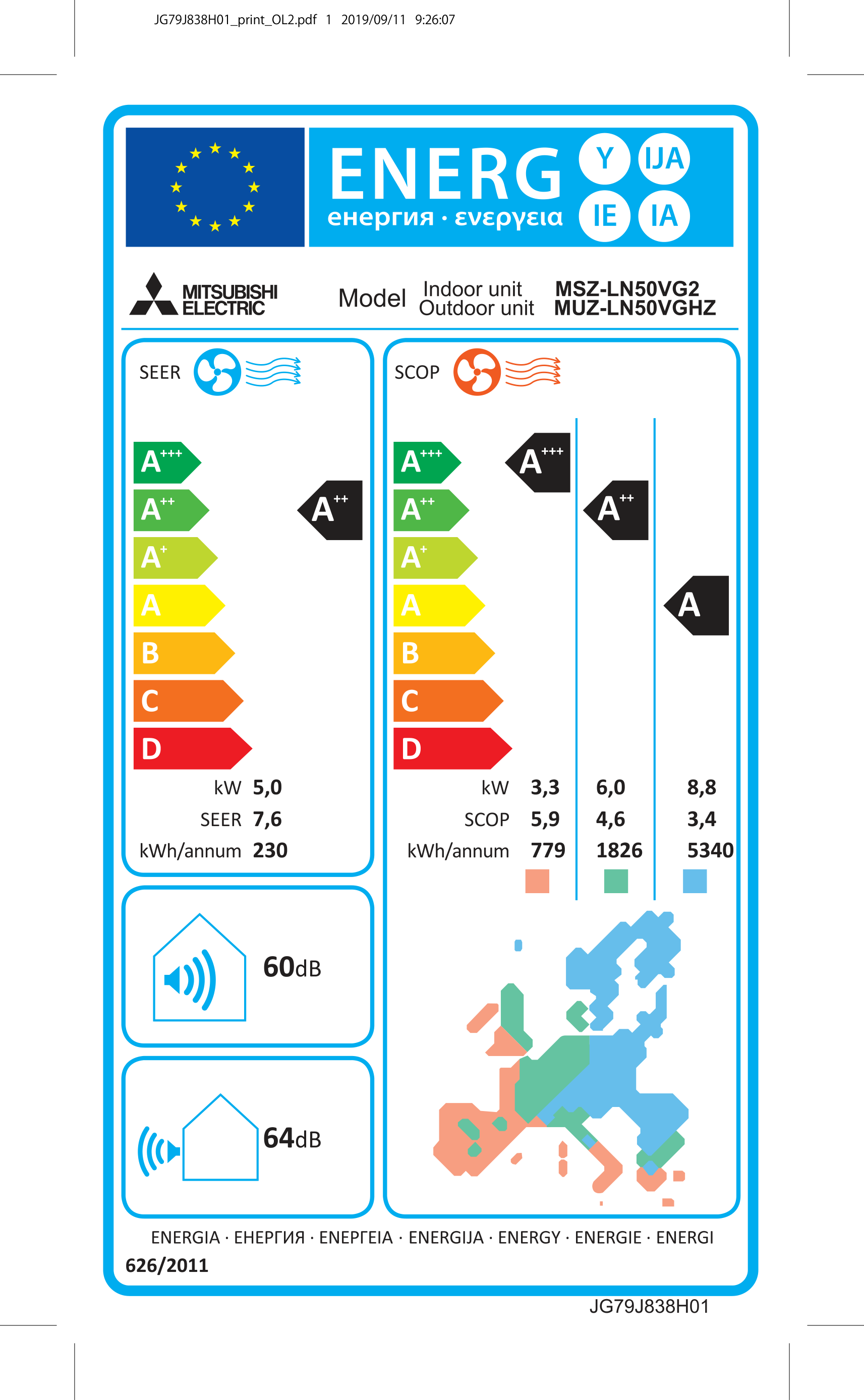 | Modell Utomhusdel | MUZ-LN50VGHZ |