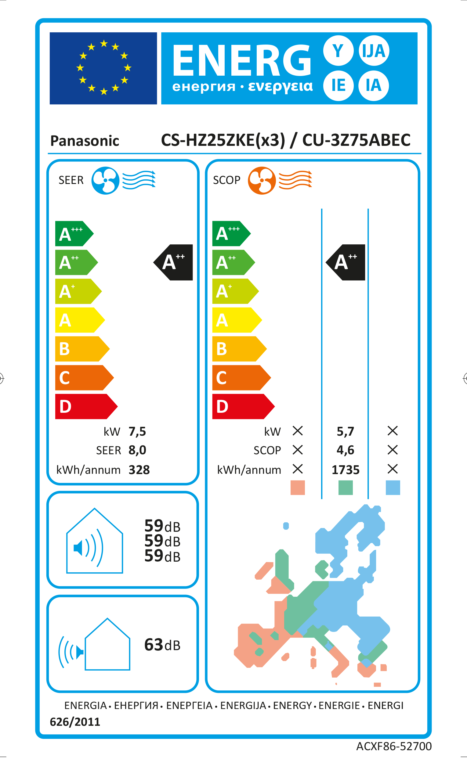 | Energieffektivitet Kall Luft | A++ |