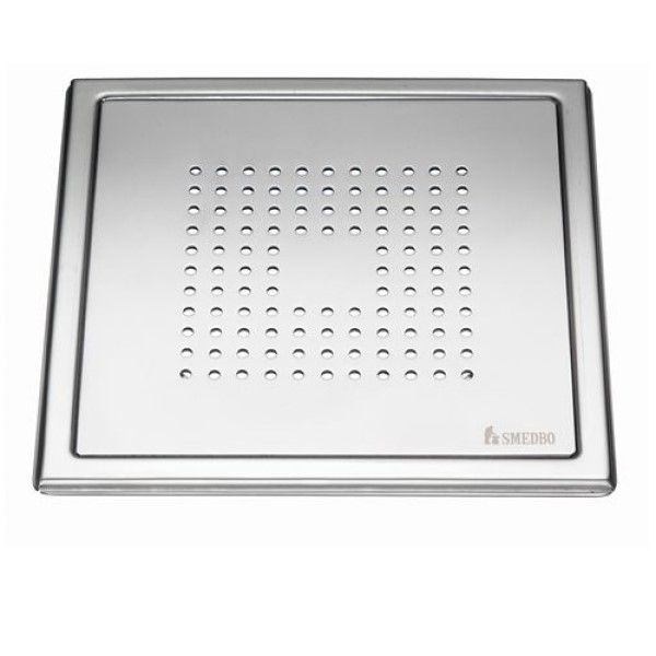 En snygg golvbrunnssil i badrumsserien Outline. Golvbrunnssilen har en kärna i rostfritt stål som passar perfekt i det fuktiga badrummet. Den har ett svart pulverlackat tåligt ytskikt och ett snyggt mönster med utstansade kvadrater.