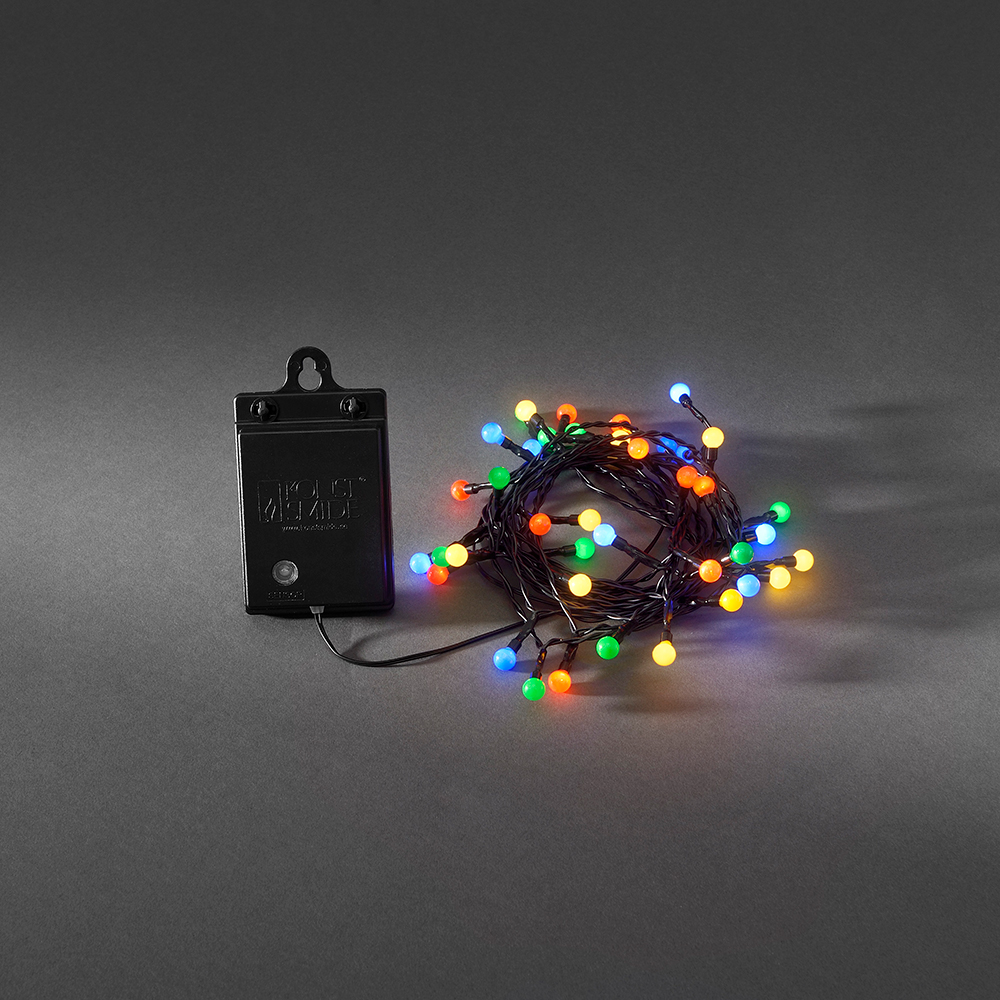 Ljusslinga från Gnosjö Konstsmide med 40 st varmvita LED-lampor. Timer på 6h. Drivs med 4 st AA-batterier (ingår ej!). Slingan är 4,4 m lång och har en 0,5 m lång anslutningssladd till första lampan. För utomhusbruk.