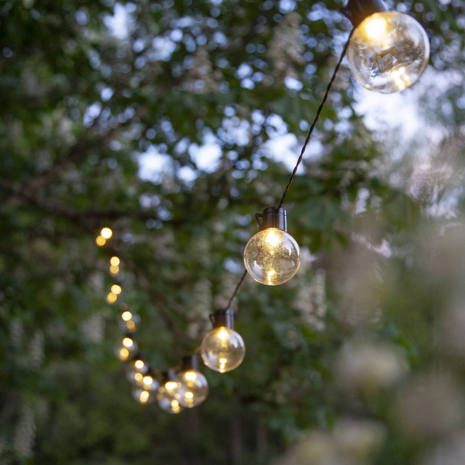 Partyljusslinga med 16 stycken LED-ljuskällor. Avsedd för utomhusbruk. Häng upp ljusslingan i taket som en dekorativ och stämningsfull inredning. Perfekt att dekorera med till vardags och fest.