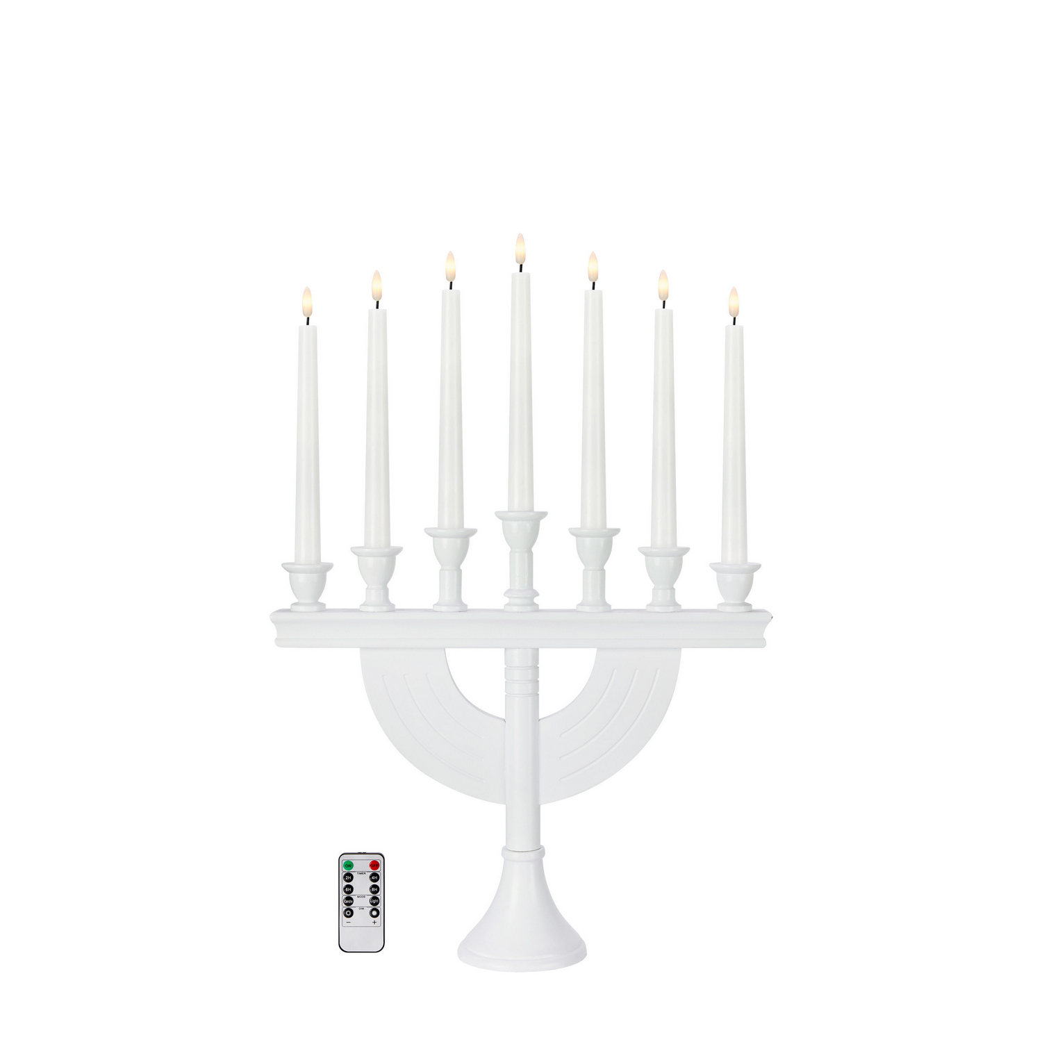 Torpa träljusstake från Markslöjd. Ljusstake i brun betsad trä med 7st fjärrstyrda LED waxljus. 2,4,6 och 8h timerfunktion. Ställbar ljuseffekt, konstant eller flamma. Konstant ljus i 4st dimbara steg. 25cm höga. Brytare under varje ljus. Drivs med 2xAAA batterier. Batterier ingår ej.
