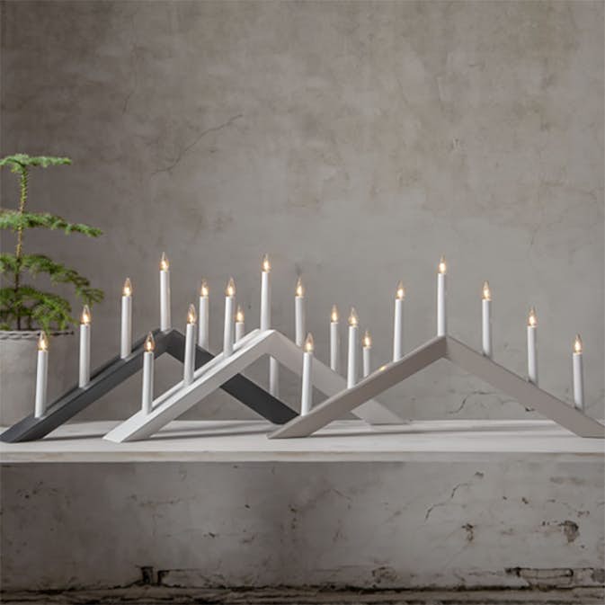 Modern träljusstake från Star Trading. Ljusstaken har fasade former. Skapar en härlig julstämmning i både hem och offentlig miljö.