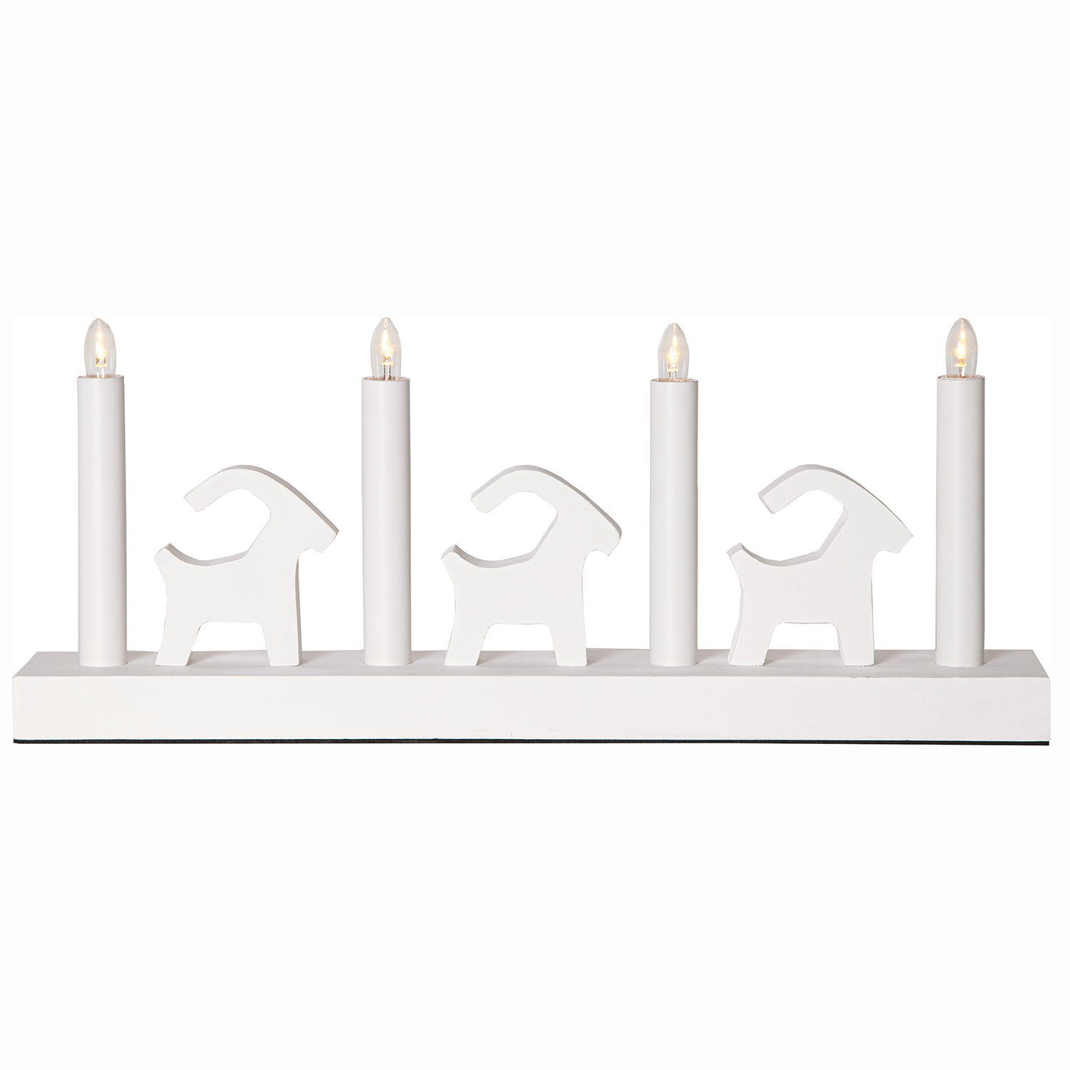 Design Charlotte Falck.Klassisk adventsljusstake som ger ett modernt intryck. Julbockar och bas i trä tillsammans med metallpipor. Lyser fint med fyra LED lampor. Skapar fin julkänsla och härlig stämning. En självklar ljusstake i hemmet från år till år. Förhöj ljusstaken genom att använda vår ljusstake för LED-candle i samma serie.