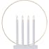 Träljusstake med 4 stycken ljuspipor i metall. Dekorerad med en metallring. En vacker adventsljusstake som sprider stämning i hemmet.