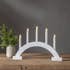 Batteridriven bågformad adventsljusstake tillverkad i trä. Ljusstaken är liten och nätt och därför lättplacerad i både fönster och på skänk. LED lampor som lyser fint och skapar julkänsla i hemmet.