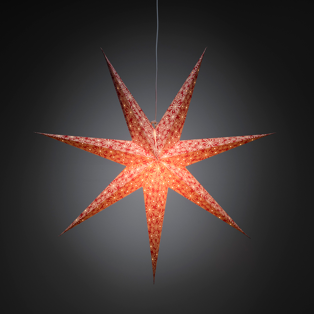 Hängande pappersstjärna från Gnosjö Konstsmide, mått 78x78cm. Inklusive sladdställ och 5 m anslutningssladd.