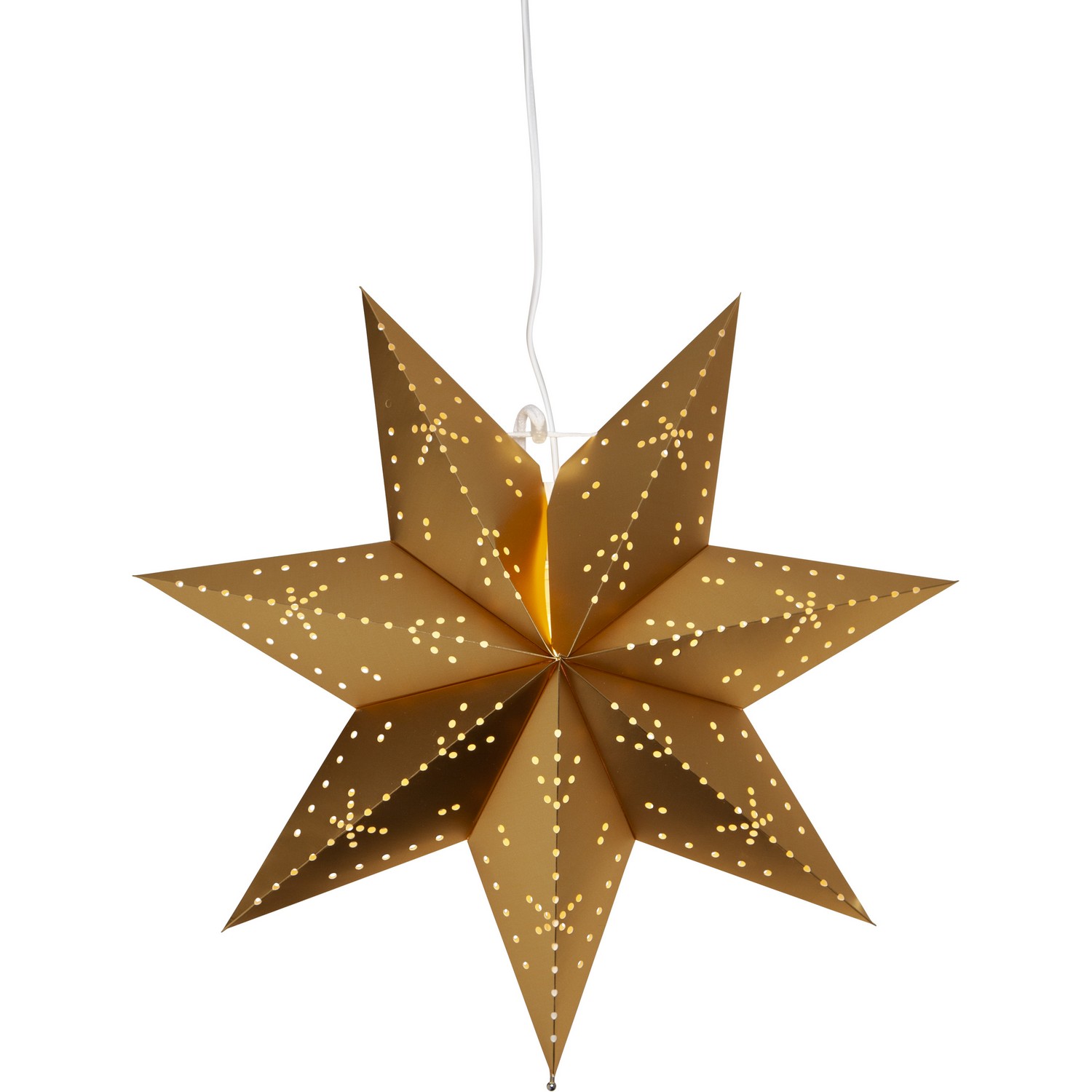 Dekorativ adventsstjärna i papper, stansat hålmönster som släpper igenom ett stämningsfullt ljus. Sladdställ med E14-lamphållare ingår. Dekorera till advent och jul, passar utmärkt i ett förnster eller mot en vägg för den perfekta julkänslan.