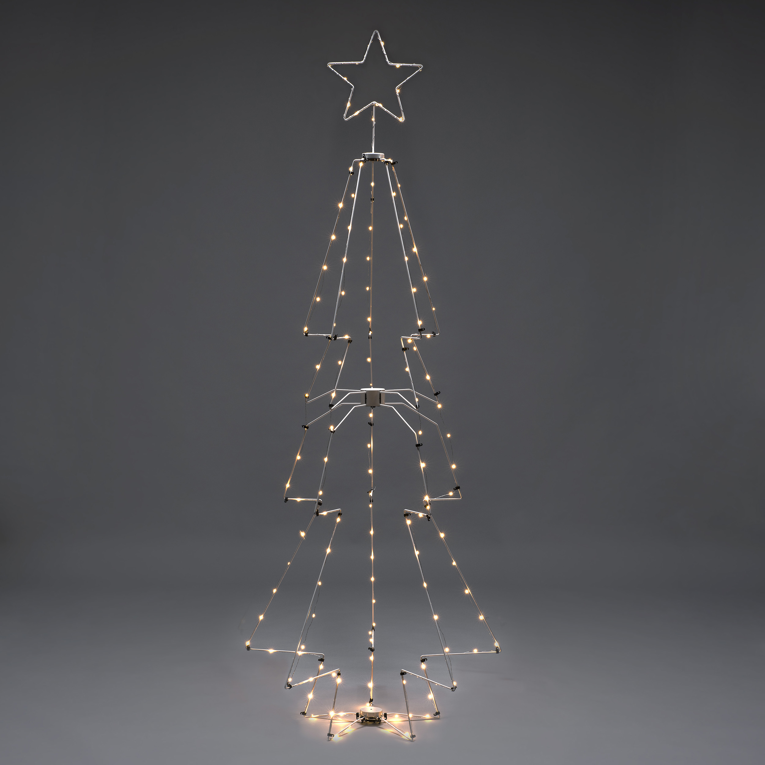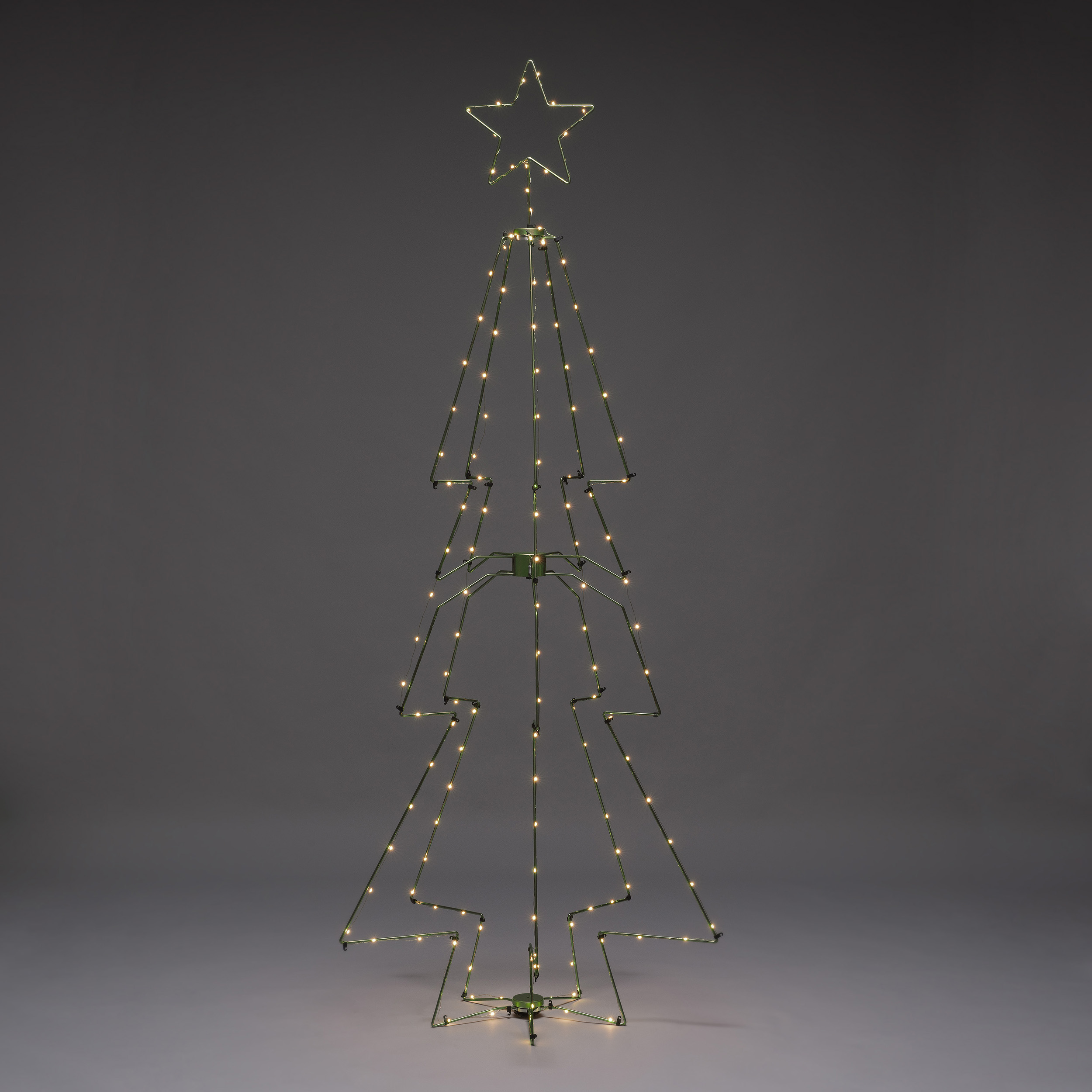 Lackerad metallgran från Gnosjö Konstsmide, komplett med toppstjärna. Granen har fem st slingor med 145 st amberfärgade LED-lampor.