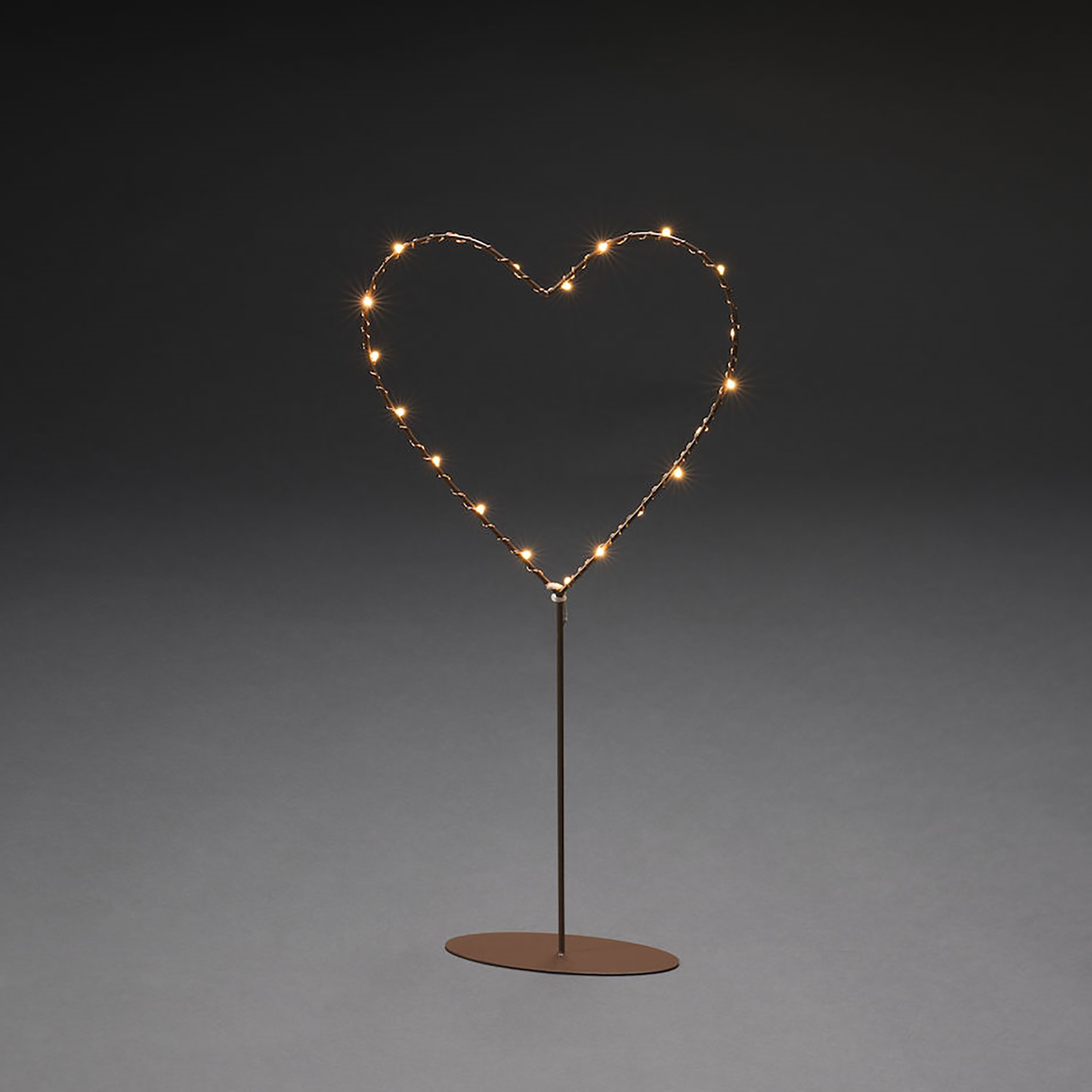 Vackert metallhjärta med 20 st amberfärgade LED-ljus och timer på sex timmar.