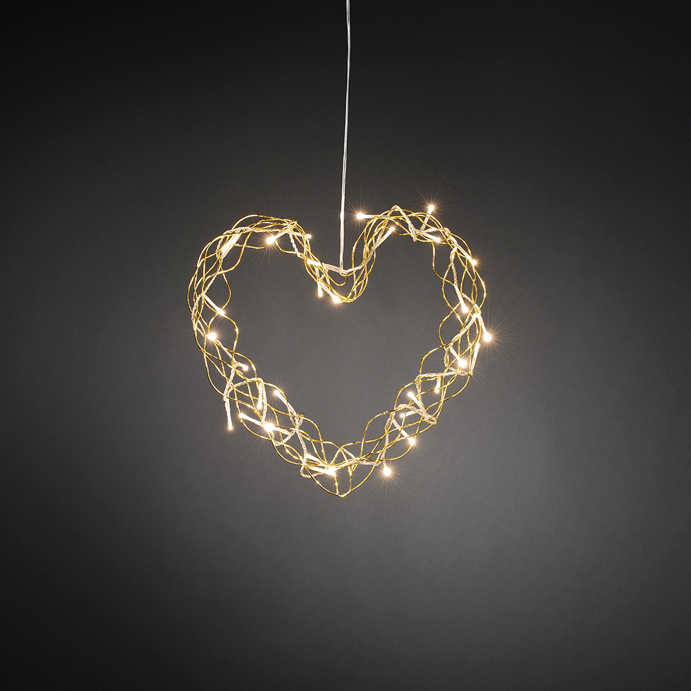 Hjärtformad metallkrans från Gnosjö Konstsmide med 32 st varmvita LED-lampor. Sladd 5 m.