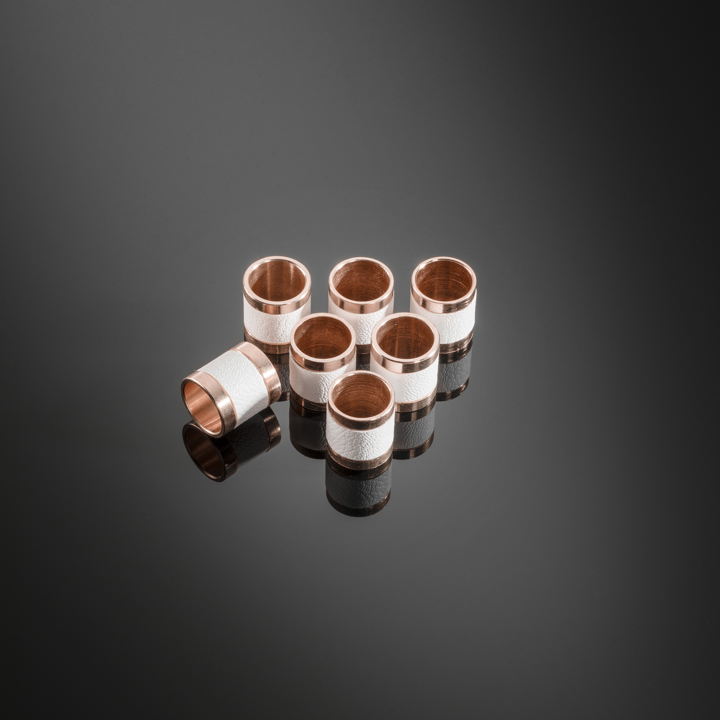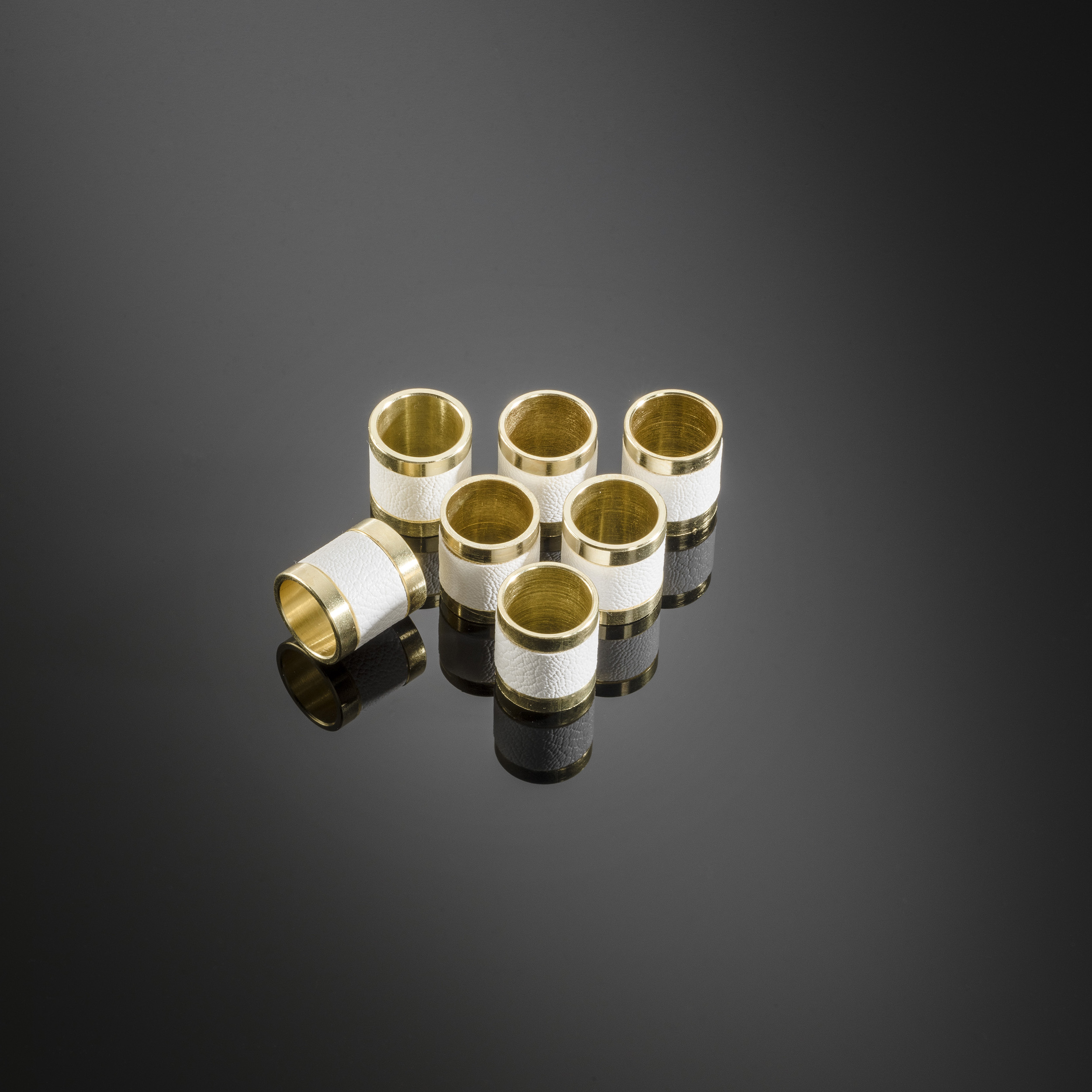 Sju st dekorationshylsor från Gnosjö Konstsmide med läderdetalj för adventljusstakar.