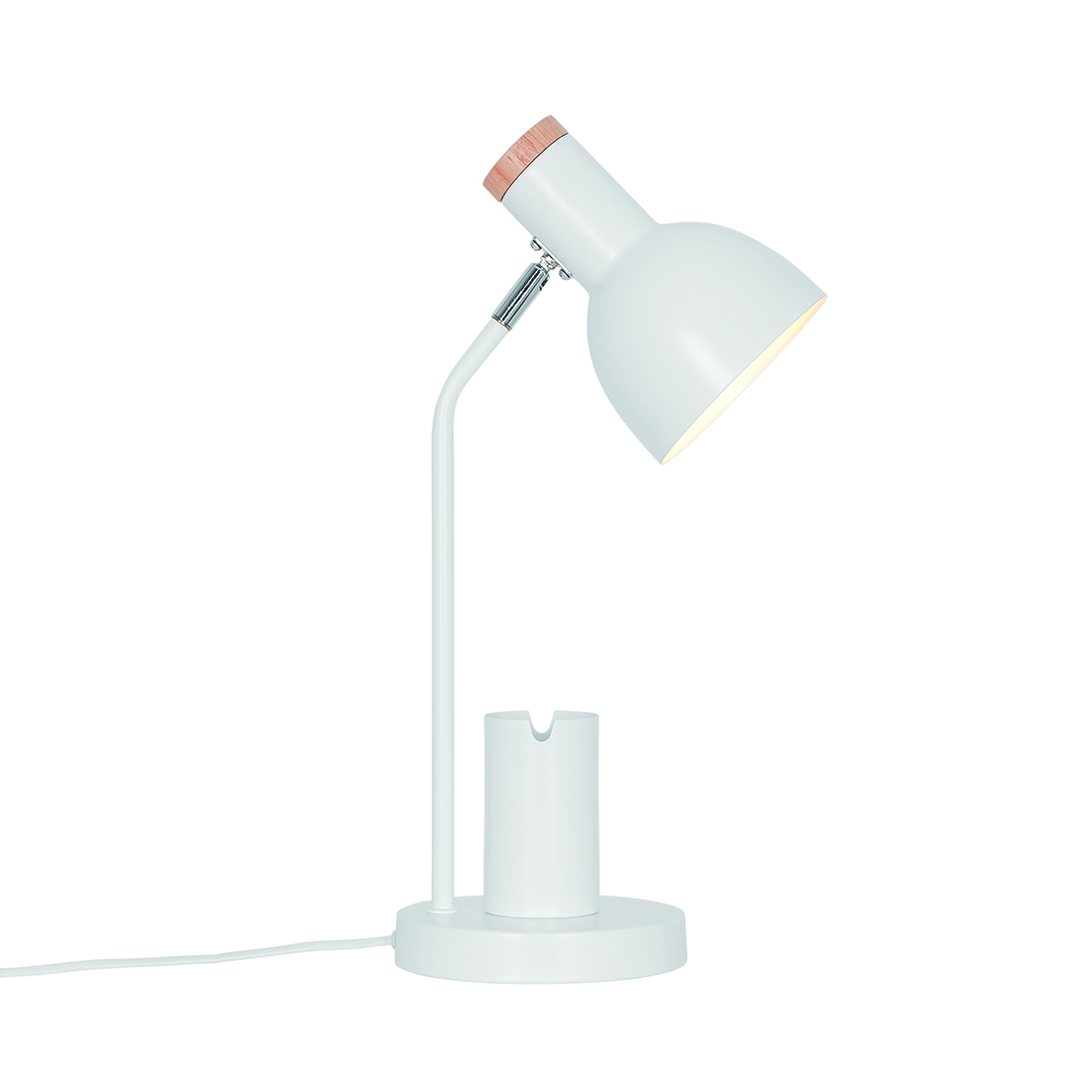 Devone är den perfekta skrivbordslampan för barnrummet med sin fina design, pennförvaring och telefonhållare. Devone är tillverkad i metall med en cool trädetalj högst upp, och den har ett flexibelt lamphuvud som gör den idealisk för att skapa bra läsbelysning.
