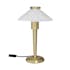 Bordslampa PR Home August är en bordslampa med metallfot och skärm i glas. Lampfoten är i mässing med matt finish. Lampskärmen är i glas och skruvas på plats med hjälp av en metallkåpa i samma finish som foten. Ljuskällan är omsluten av ett glasrör som sprider ett vackert sken inuti skärmen.