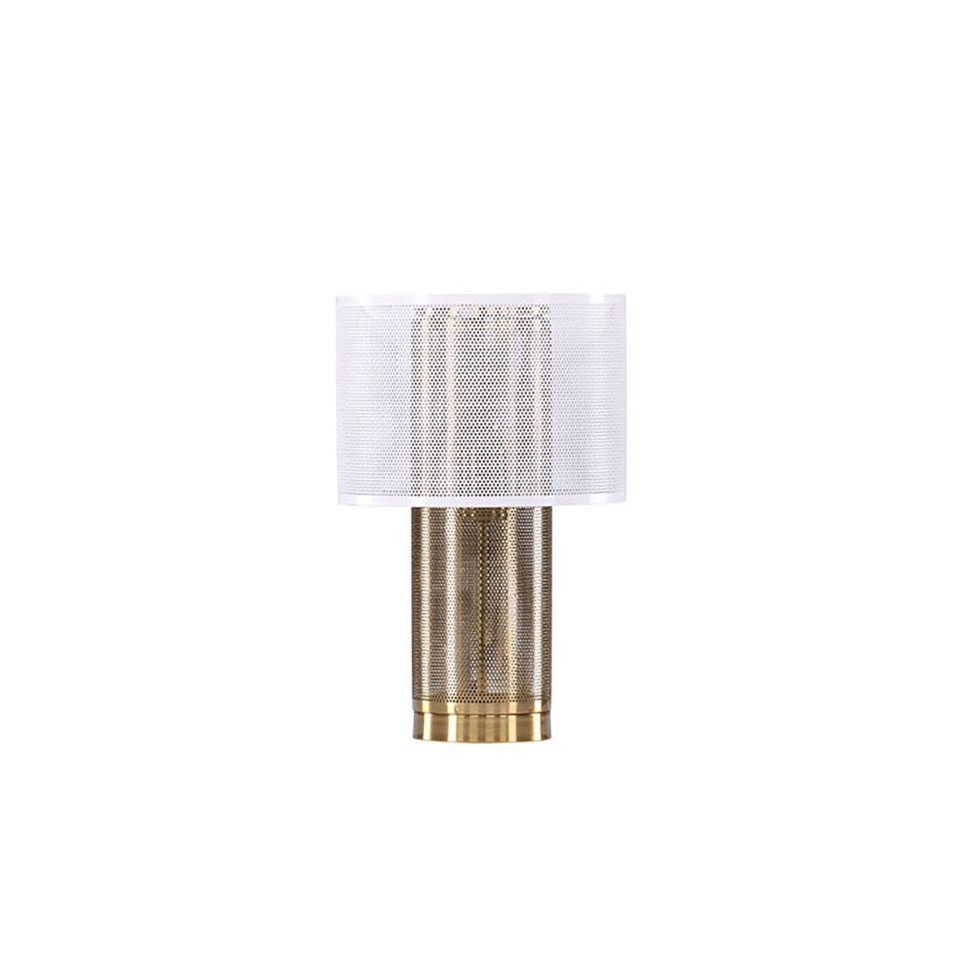 Lampa från Venture Home. Gap, en unik bordslampa för det moderna hemmet! Lampan imponerar med sin guldiga fot och lampskärm designad i ett fint meshmönster som gör att lampan blir en snygg inredningsdetalj. Placera lampan på byrån tillsammans med annan dekoration eller ensam som stilikon i ett mörkt hörn för att höja inredningsnivån. Den här lampan blir både en praktisk lampa med ett behagligt ljus och en viktig del av inredningen.