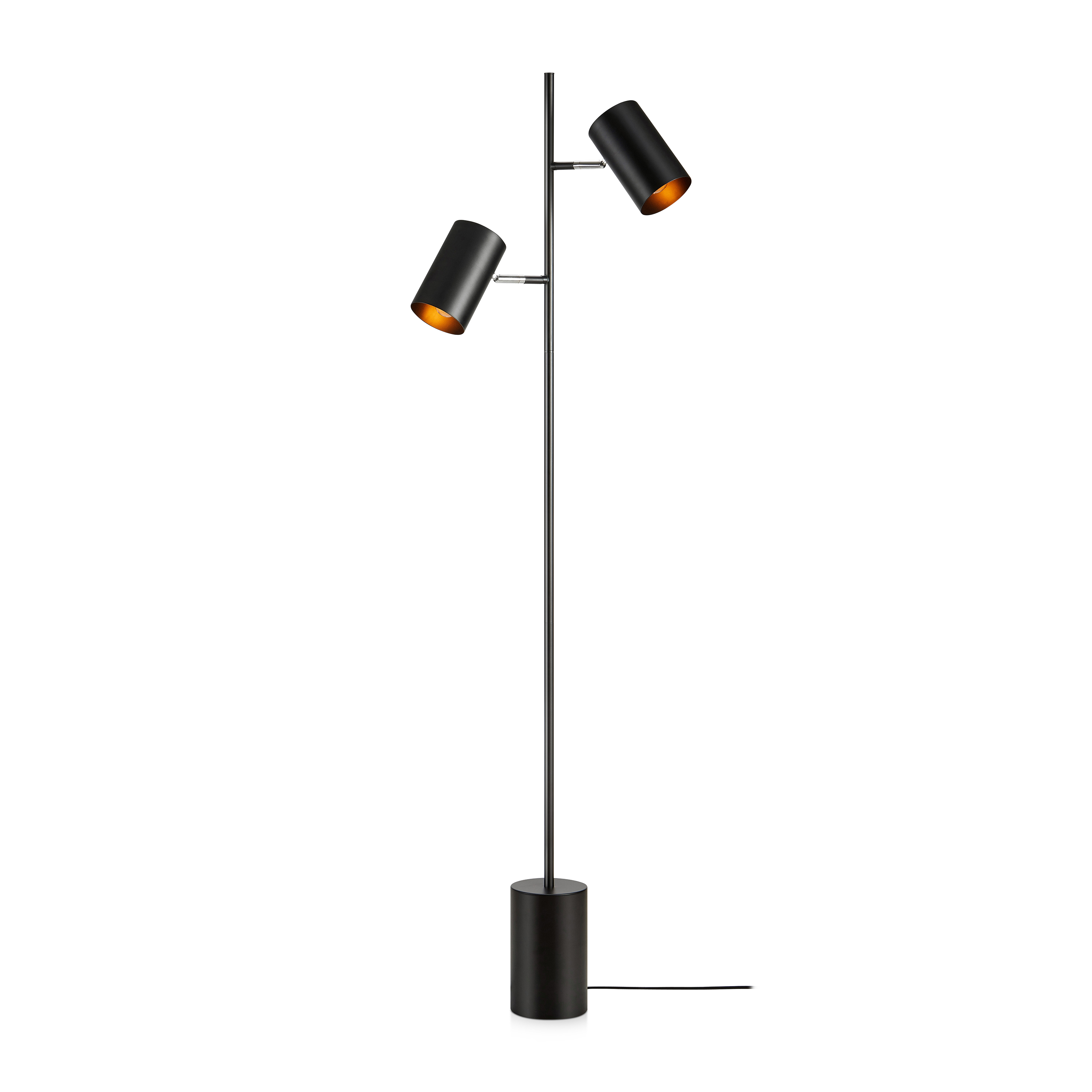Twin golvlampa från Markslöjd är en vacker lampa med två riktbara skärmar. Den har en strömbrytare på varje lamphuvud.