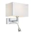 Savoy vägglampa från Markslöjd. Väggfäste i metall med textilskärm. Separata brytare på väggplattan. Stor (E27) lamphållare för max 60W glödljus eller motsvarande styrka i halogen, lågenergi eller LED. Läslampa LED 3W. Sladdlängd 2 m. Vid fast montage kan kabel tas bort.