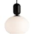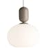 De kurviga formerna ger en vacker pendel som återspeglar en elegant design. Den stora kupolformade glasskärmen i opalvitt glas utgör en fin kontrast till den lätta metallsockeln som bidrar till visuell volym och ett mjukt ljus.