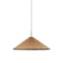 Taklampa Dora med 2m svart textil kabel och lampskärmen gjord i brunfärgat papper. Takkopp och lamphållare i brun lackerad metall. Lampan är med 1st E27 lamphållare, förberedd för ojordad anslutning och krokupphängning till befintligt takuttag. Lampskärmen är 60 cm i diameter.