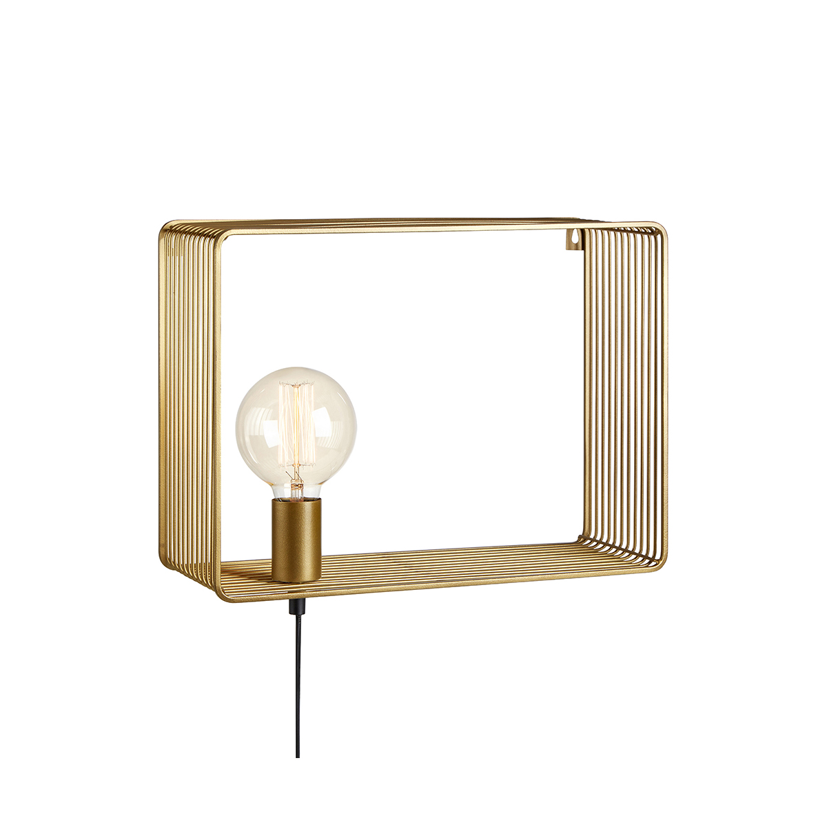 Shelf är en vägglampa i kombinerad hylla från Markslöjd. Monteras enkelt upp med skruv och har 2 m lång svart sladd med strömbrytare samt väggkontakt.