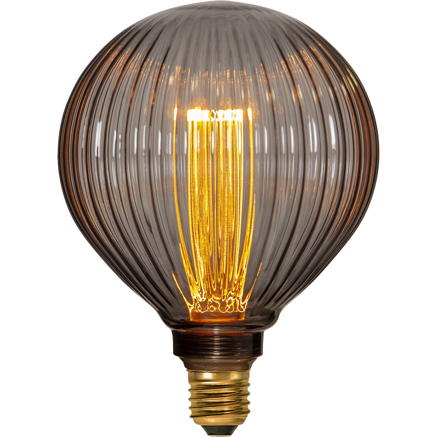 Läcker LED-lampa i glas. Denna ljuskälla ger ett mysigt och varmt sken. Lämpar sig ypperligt för dekorationsbelysning och passar perfekt i Star Tradings upphäng, eller lampfötter. Hittar sin självklara plats över såväl soffbord, bardisk som över en matsalsmöbel. Kan hänga själv eller i ett arrangemang.