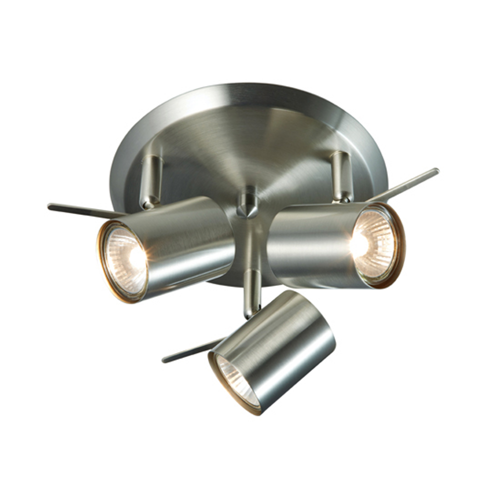Markslöjd takrondell Hyssna LED. Godkänd för badrum (IP21). 3 st ställbara spotar i metall. Utbytbara LED-ljuskällor ingår. Bygelupphäng. Anslutes till jord (Klass I ). Medföljande LED ljuskälla är ej dimbar.