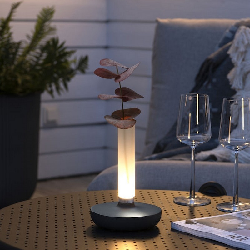 Bordslampa Gnosjö Konstsmide Biarritz USB är en vacker lampa som också fungerar som vas. Den har inställningsbar ljustermperatur 18000/2700/400K och är således dimbar. Denna lampa passar utmärkt på uteplatsen eller i uterummet.