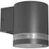 Cylinderformad fasadbelysning i elegant design tillverkad i aluminium, med täckglas. Dekorring i frostad polykarbonat. Väggarmaturen sprider ljuset nedåt och den transparanta ringen ger en extra dimension till ljuset. Belysningen passar både på privata fastigheter och i offentlig miljö.