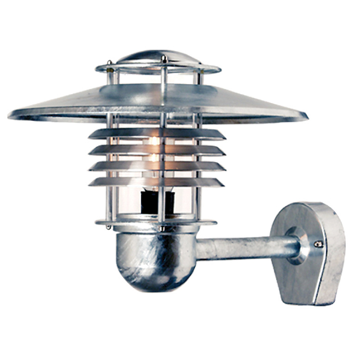 Väggarmatur med rundstrålande ljusbild. Armaturen har E27-lamphållare och är godkänd för max 75W. Bakstycket har två in- och utgångar samt snabbkopplingskopplingsplint. Avsedd för utomhusbruk (IP23) och passar för bruk både i privat och offentlig miljö.