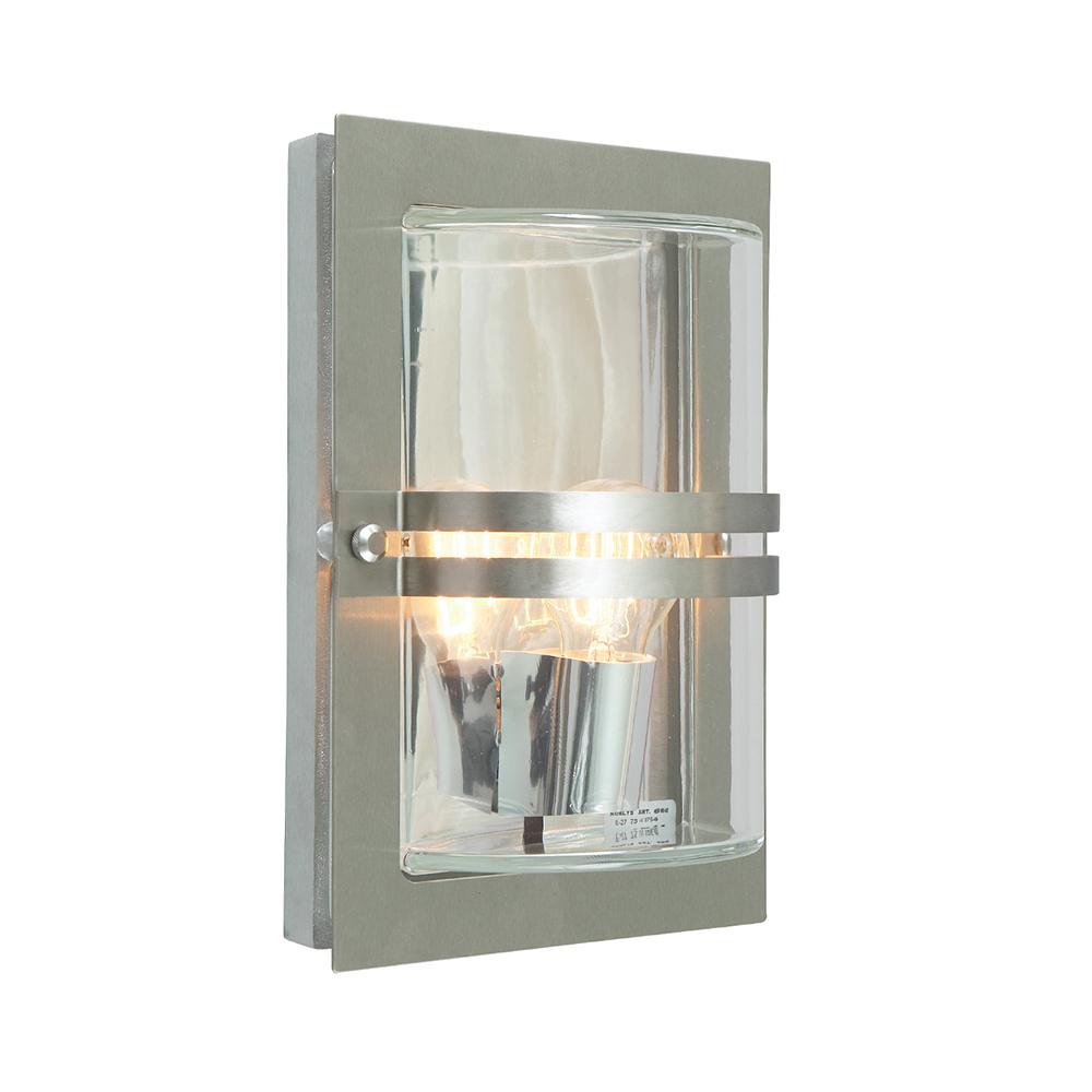 Kraftig armatur med ett bakstycke i gjuten aluminium. Frontar kan fås i svart, galvaniserat eller rostfritt stål. Ett riktigt glas i klar eller frostat utförande.