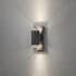 Vägglykta Gnosjö Konstsmide Potenza 7987 GU10 är en elegant fasadbelysning som levereras utan ljuskälla. Den har en modern design och belyser väggen både uppåt och neråt.