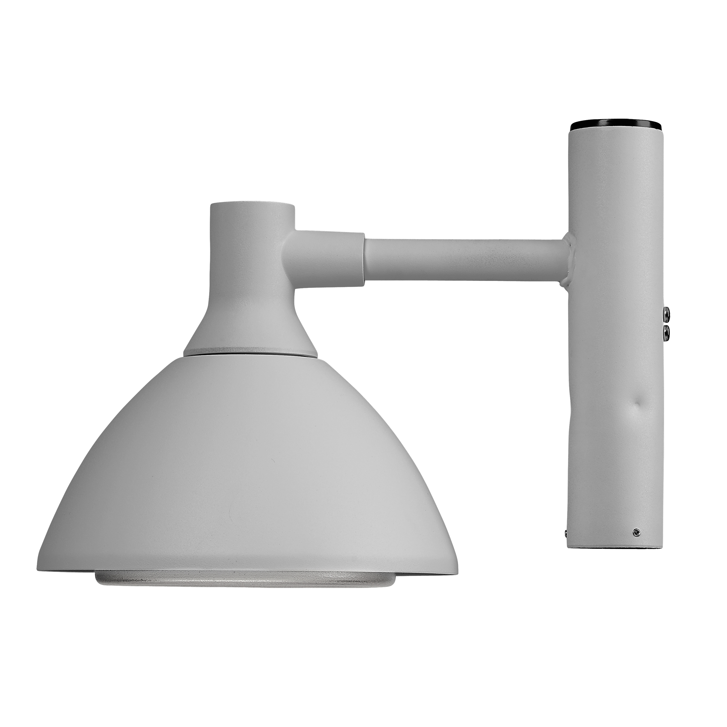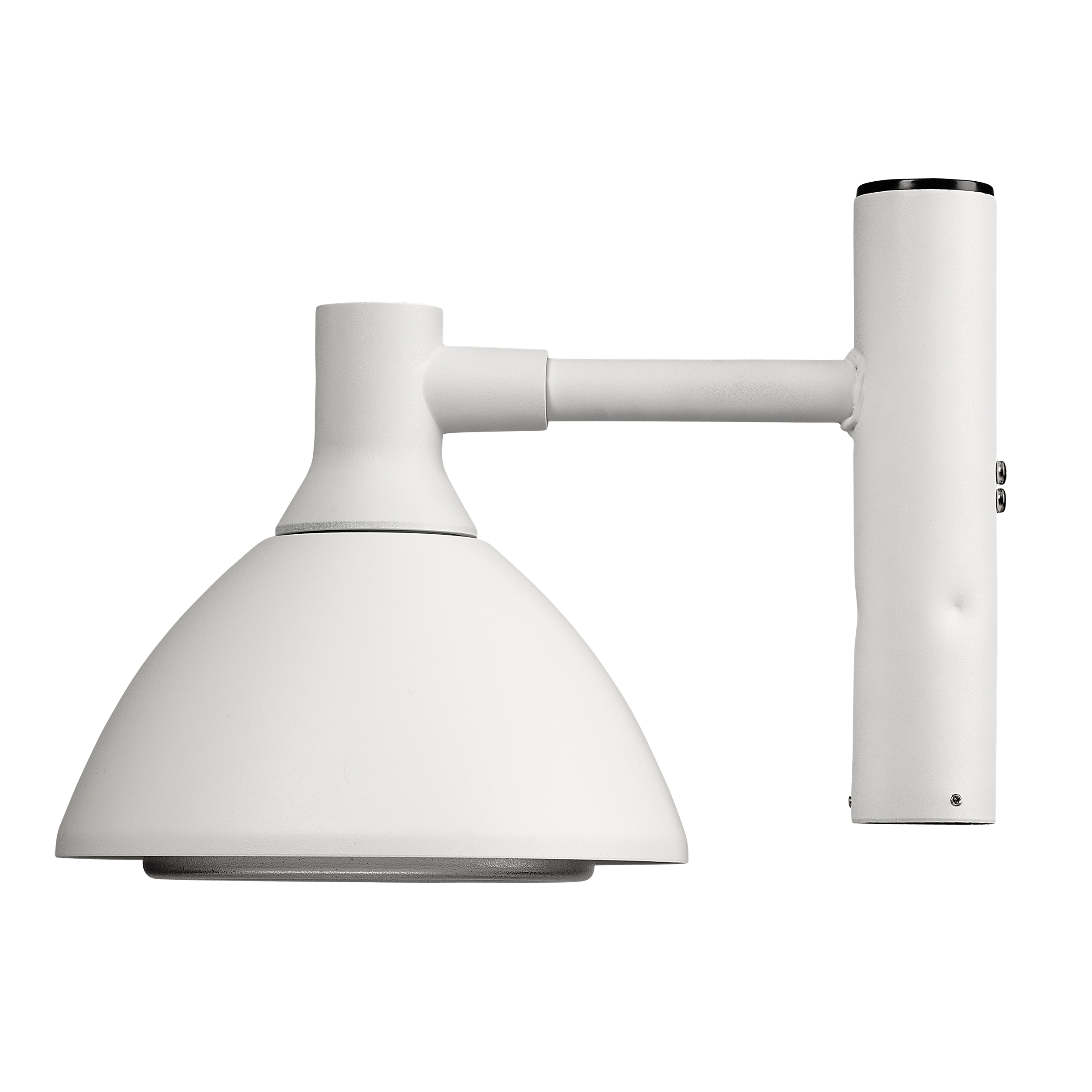 Stolparmatur med en arm från Westal som har avbländat nedljus. Anpassad för stolptopp 60 mm med kabelavlastning och snabbkopplingsplint 3x2x2,5 mm². Tillverkad i kromaterad och pulverlackerad stomme med bländskydd i PET-G. Passar för bruk både i privat och offentlig miljö.