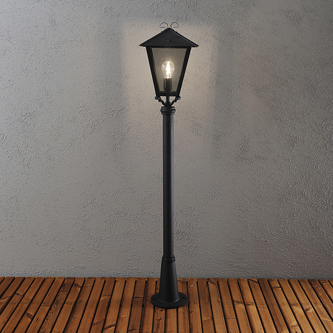 Trädgårdslykta Gnosjö Konstsmide Benu E27 med Stolpe är en elegant stolplykta i klassiskt snitt. Lyktan har klasglas och är IP 23-klassad. Denna stolplykta är anpassad för utomhusbruk och levereras utan ljuskälla.