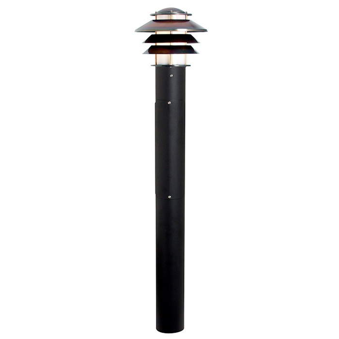 Pollararmatur med rotationsymmetrisk ljusbild. Armaturen har E27-lamphållare som är godkänd för max 75W. Pollaren har kopplingslucka och är anpassad för direktmontage i betongfundament 108/700. Avsedd för utomhusbruk (IP44) och passar för bruk både i privat och offentlig miljö.