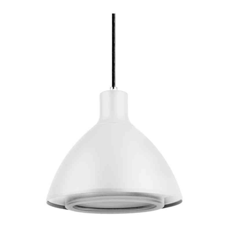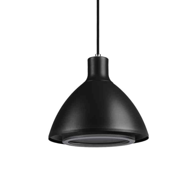 Pendelarmatur med avbländat symmetriskt nedljus. Kromaterad och pulverlackerad stomme, bländskydd i PET-G. Armaturen är bestyckad med en utbytbar LED-enhet. För pendelmontage med 2 m kabel exkl. stickpropp. Belysning i offentliga lokaler och utomhusmiljöer.