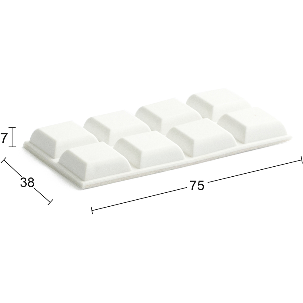Buffert av plast. Självhäftande. 8 st per karta. Fästs enkelt upp på väggar du vill skydda mot slitage av handtaget utan behov av att skruva i väggen!