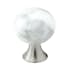 På en fot i rostfri look vilar en klotrund knopp Bead i äkta Carrera-marmor.