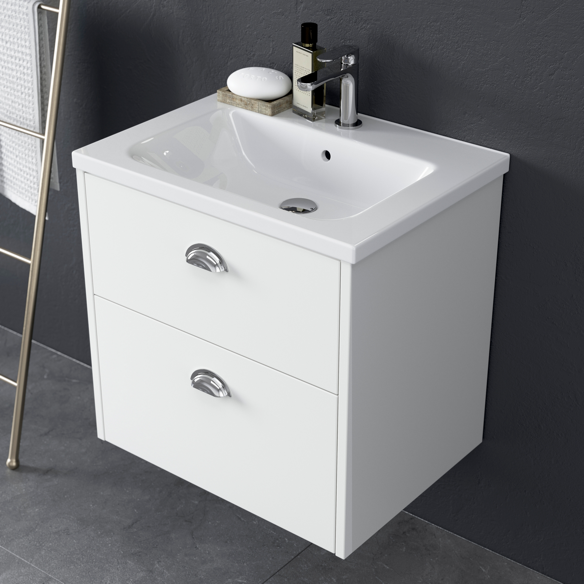 Skålhandtag INR Deep är ett stilrent handtag med klassisk design. Det passar till tvättställsskåp från INR.