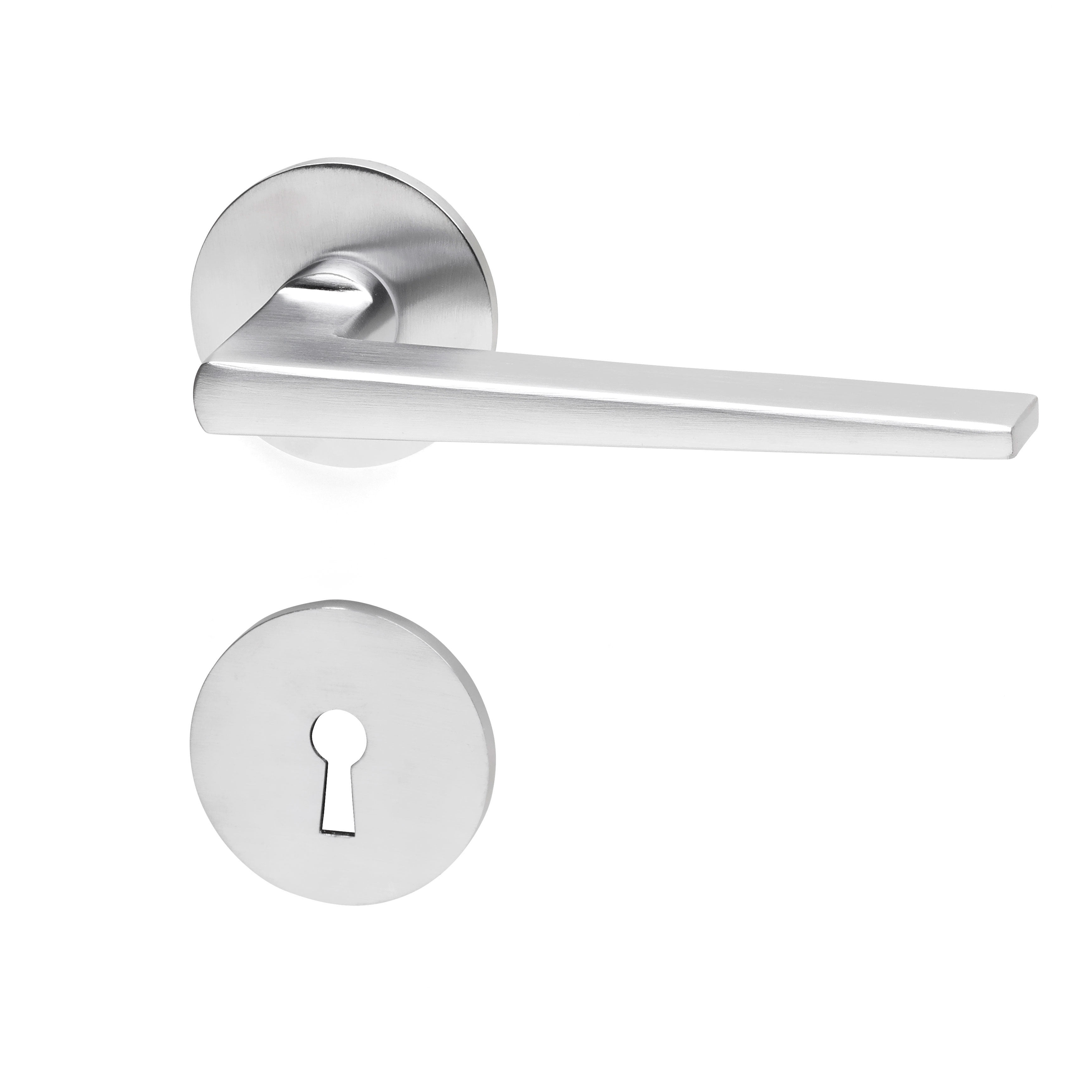 Innerdörrhandtag och nyckelskylt av zink från Habo. Passar till dörrtjocklek 38-42 mm. Utsprång: 60 mm.