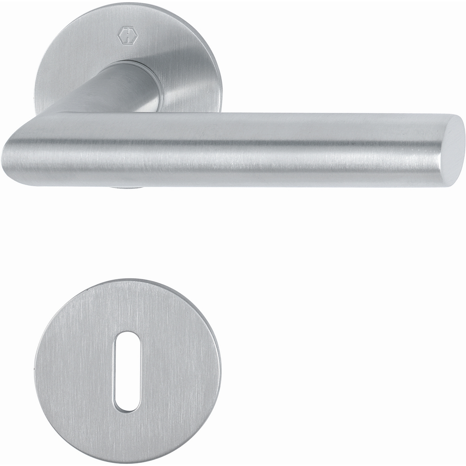 Innerdörrhandtag HOPPE Amsterdam E+1400 35-45 Nyckelskylt är ett innerdörrhandtag med nyckelskylt. Med sin unika fastsättning med Kvick-i-Sprint blir montaget stabilare och behöver inte heller återskruvas efter montaget. Passar enbart låskistor typ 2014. Montage utan verktyg, 3 mm tjock rosett, gör att designen blir annorlunda. Dörrtjocklek 35-45 mm, 10 års funktionsgaranti. Det uppfyller krav på nickelavsättning och är därför allergivänlig.
