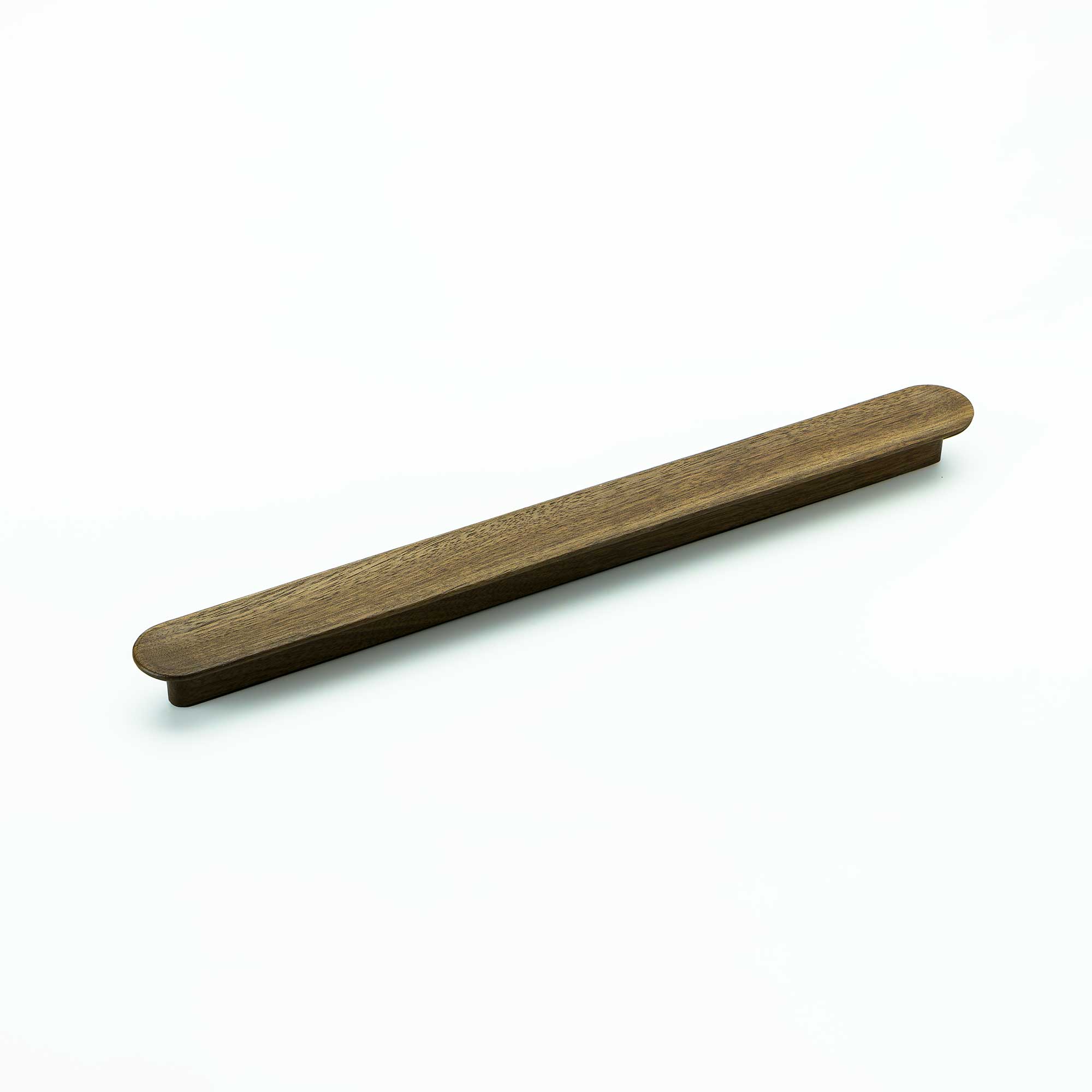 Handtag i trä från Beslag Design. Diskret men tillräckligt stort för ett bra grepp.