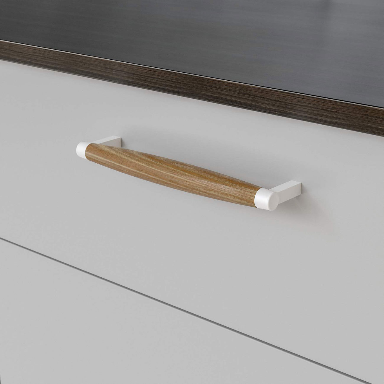 Ett handtag där fot och grepp är delbara, vilket öppnar upp för möjligheter att kombinera material och färg. Handtaget andas skandinavisk design med en exklusiv känsla.
