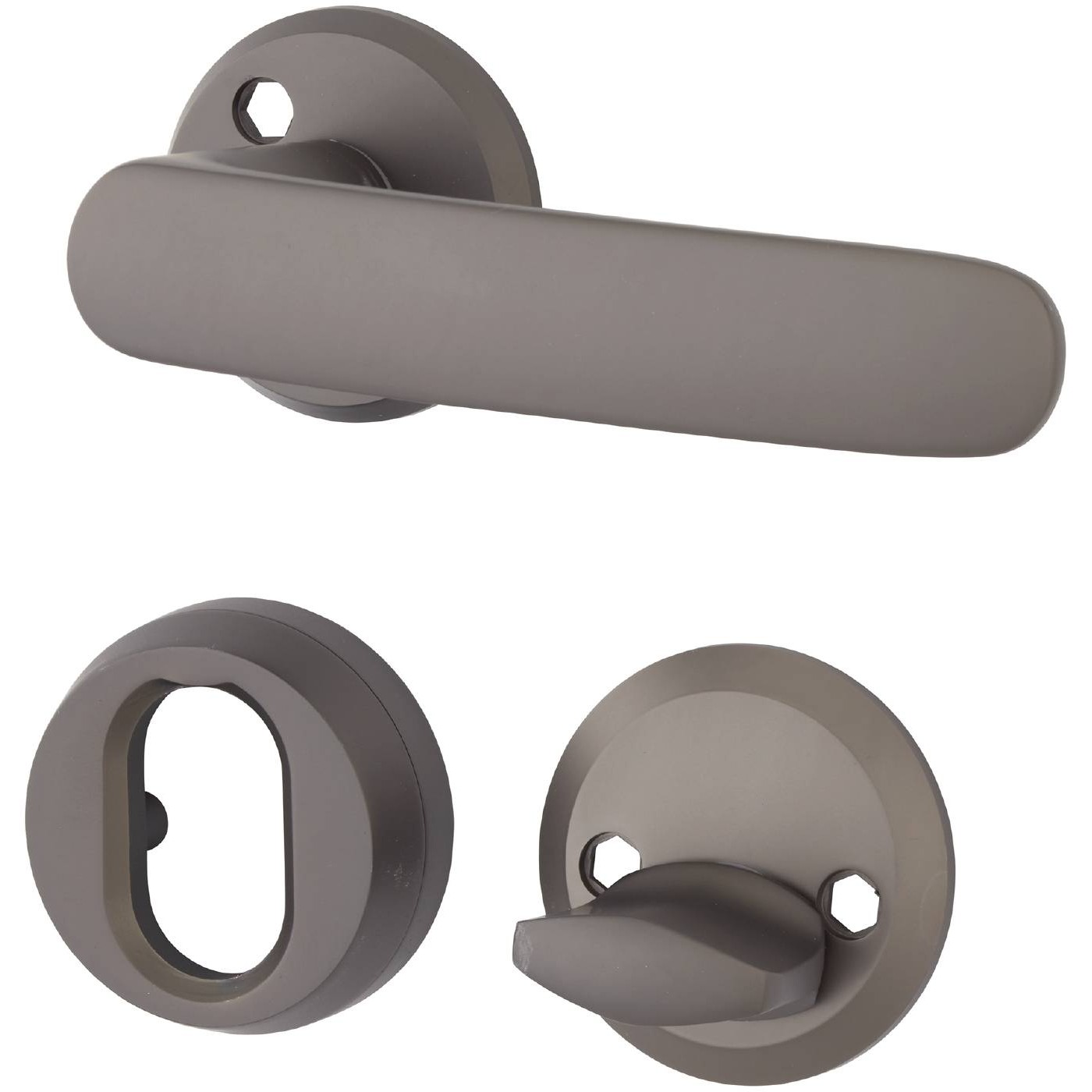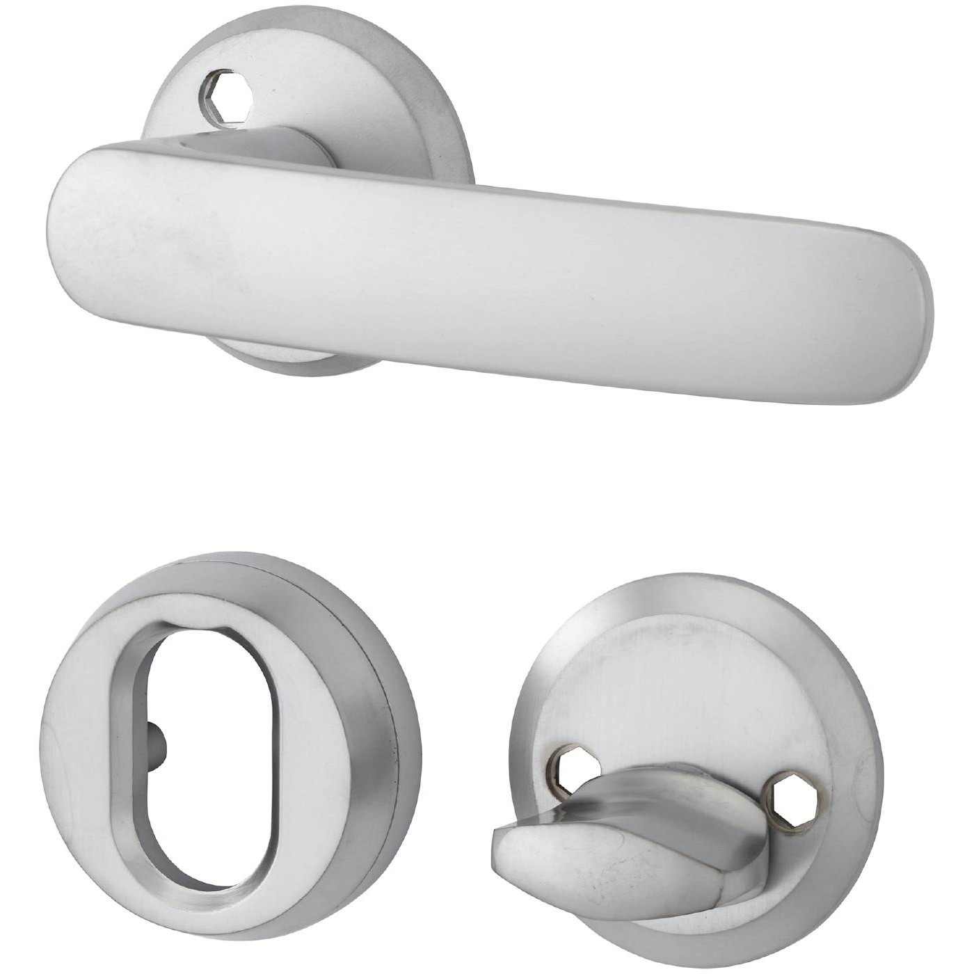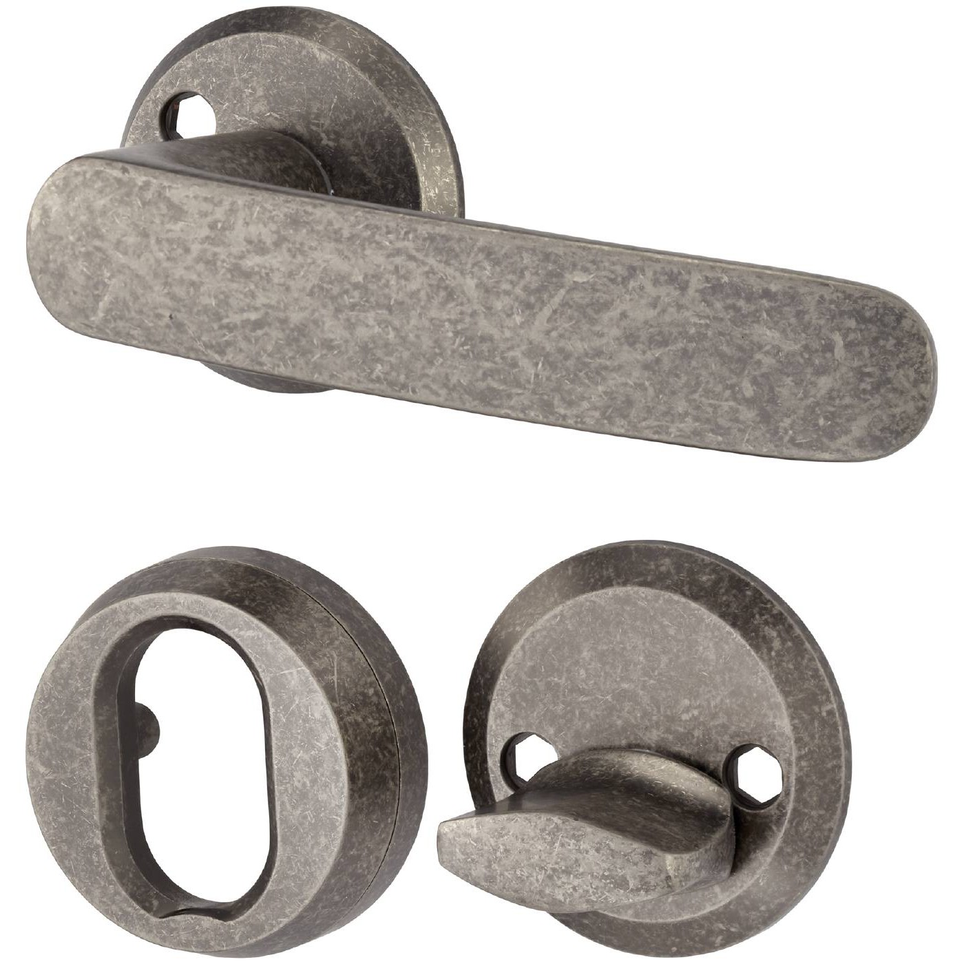 Dörrhandtag för ytterdörr utan returfjäder. Inklusive cylinderbehör, roddarpinne och skruv M5.