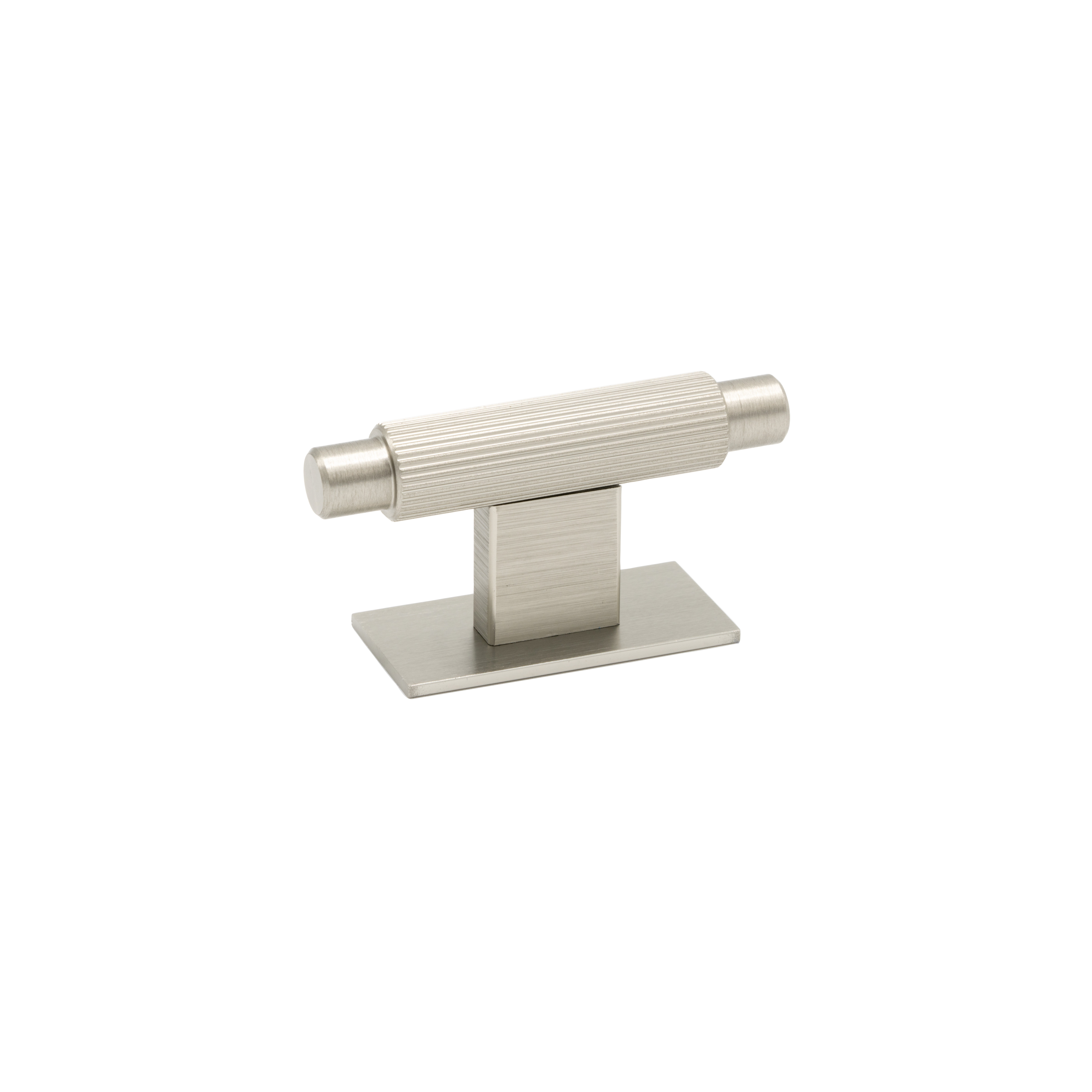 Arpa är en elegant serie med industriell design och en räfflad yta av ränder. Arpa finns som T-knopp med och utan bricka och handtag i tre längder med eller utan bricka.