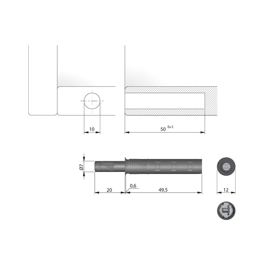 Infälld lucköppnare från Beslag till luckor som saknar handtag och knoppar. Kraftfull och tyst mekanism för lång hållbarhet. Denna variant pasar luckor med fjädrande gångjärn.