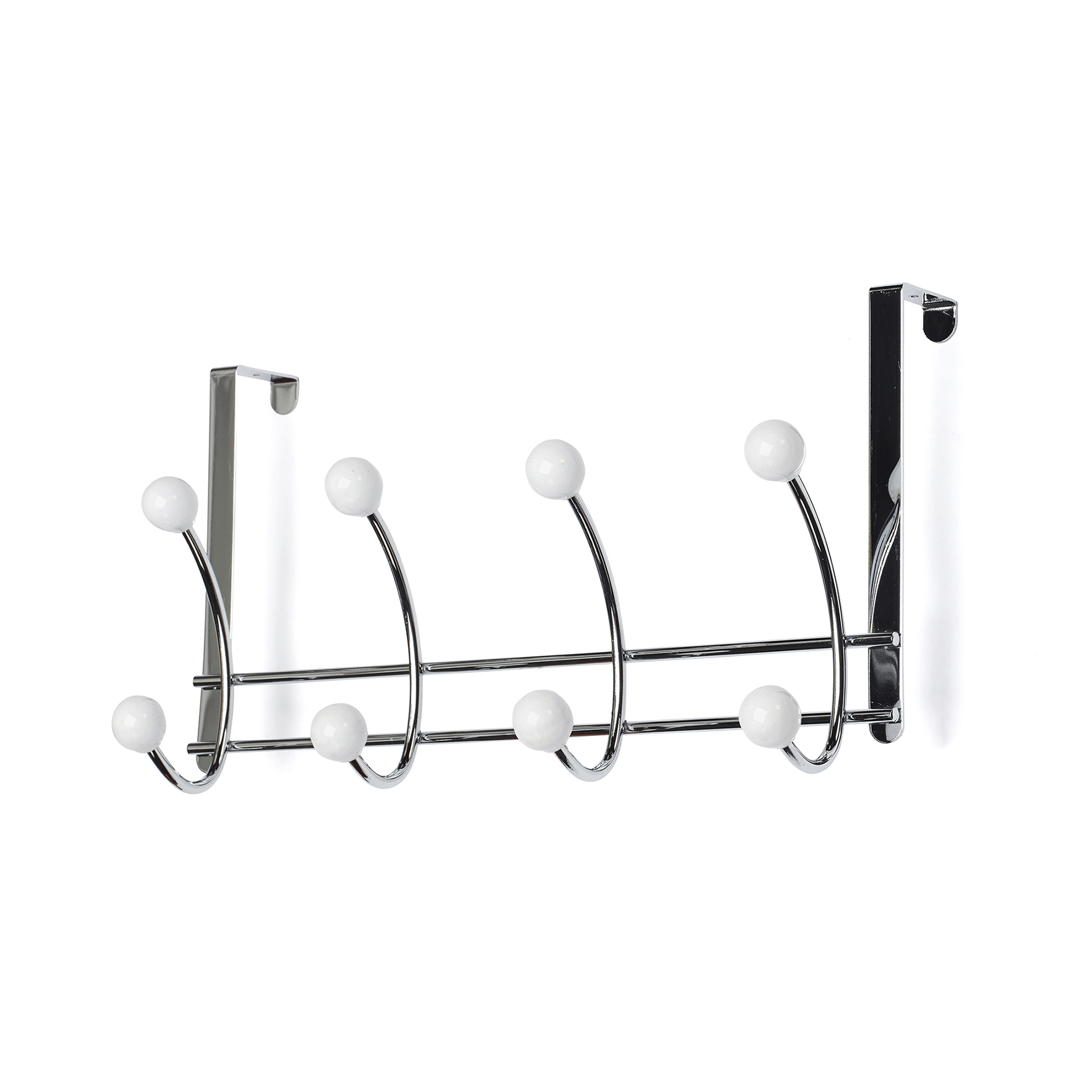 Kroklist Habo Bonny 4-krok för montering på dörr. Den är tillverkad av förkromat stål med flerfärgade knoppar av porslin. Kroklisten passar lika bra i barnrummet som i hallen.