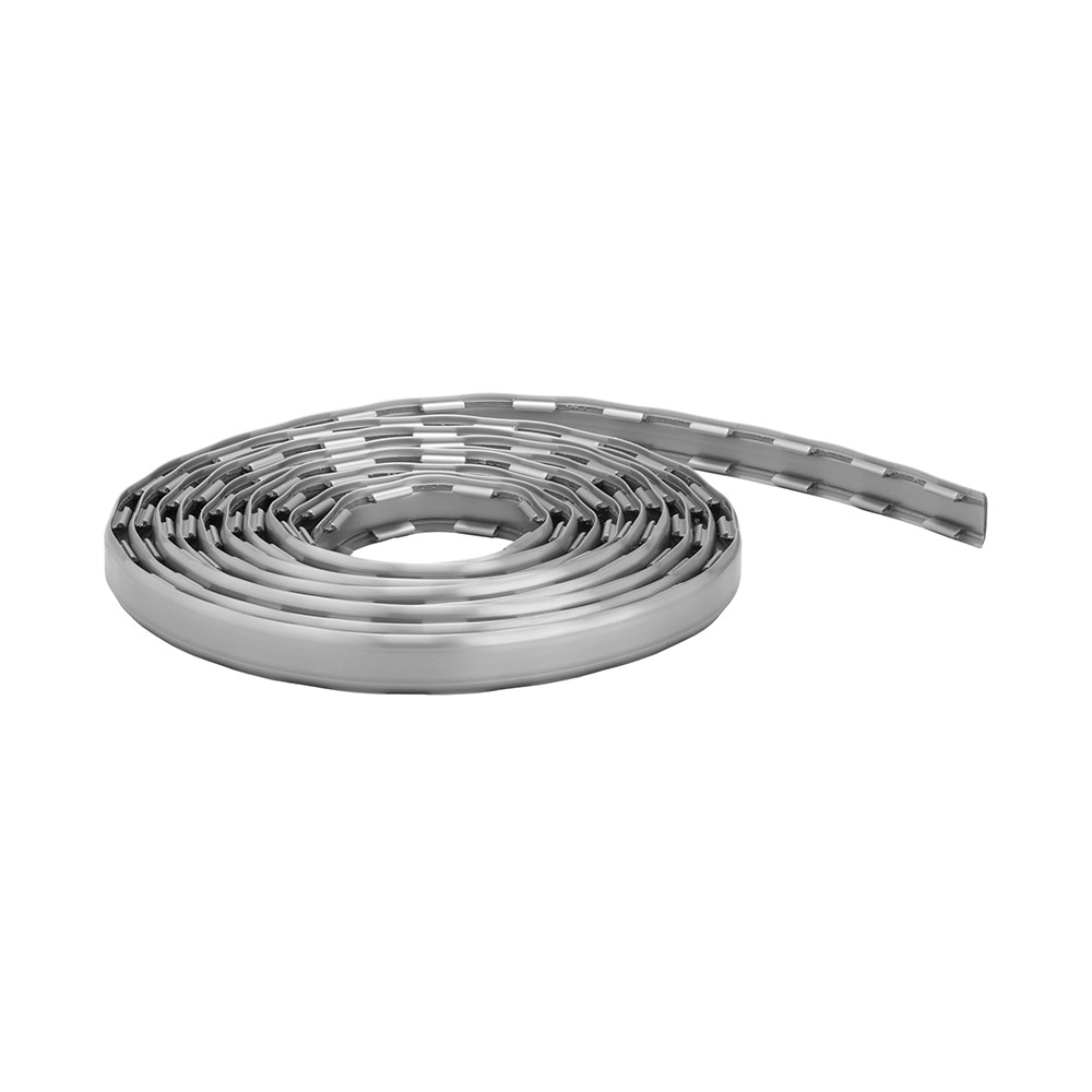 Täcklist i plast som trycks fast på häng- eller väggskenans framsida. Ger ett snyggt avslut, i de fall skenans hålbild skall döljas. Kommer på rulle och klipps till önskad höjd.